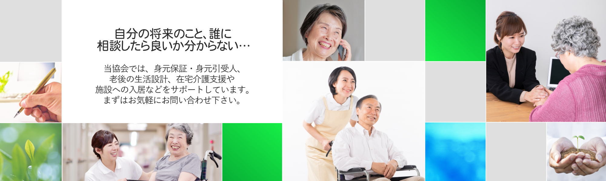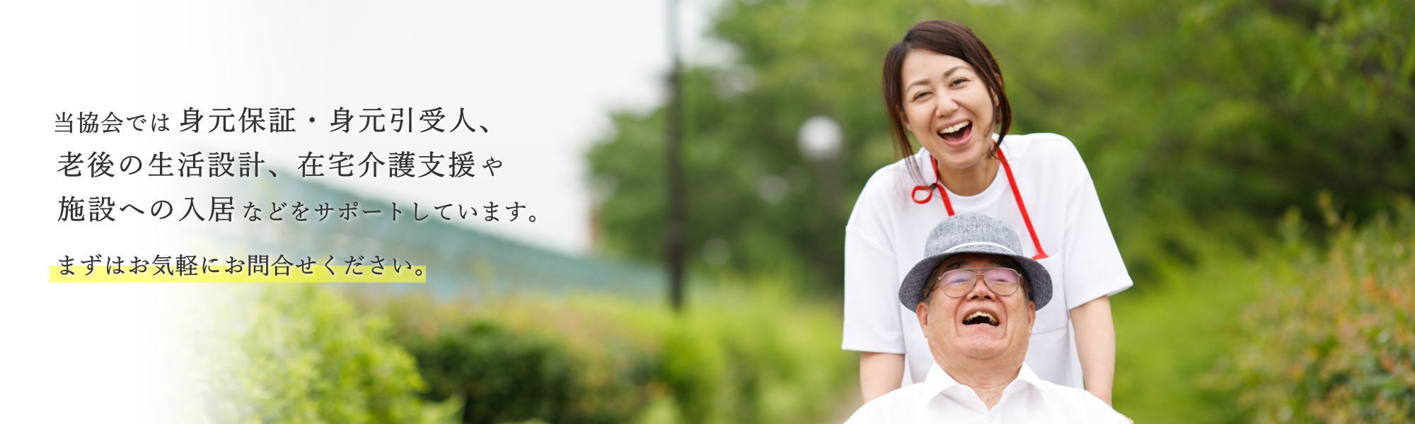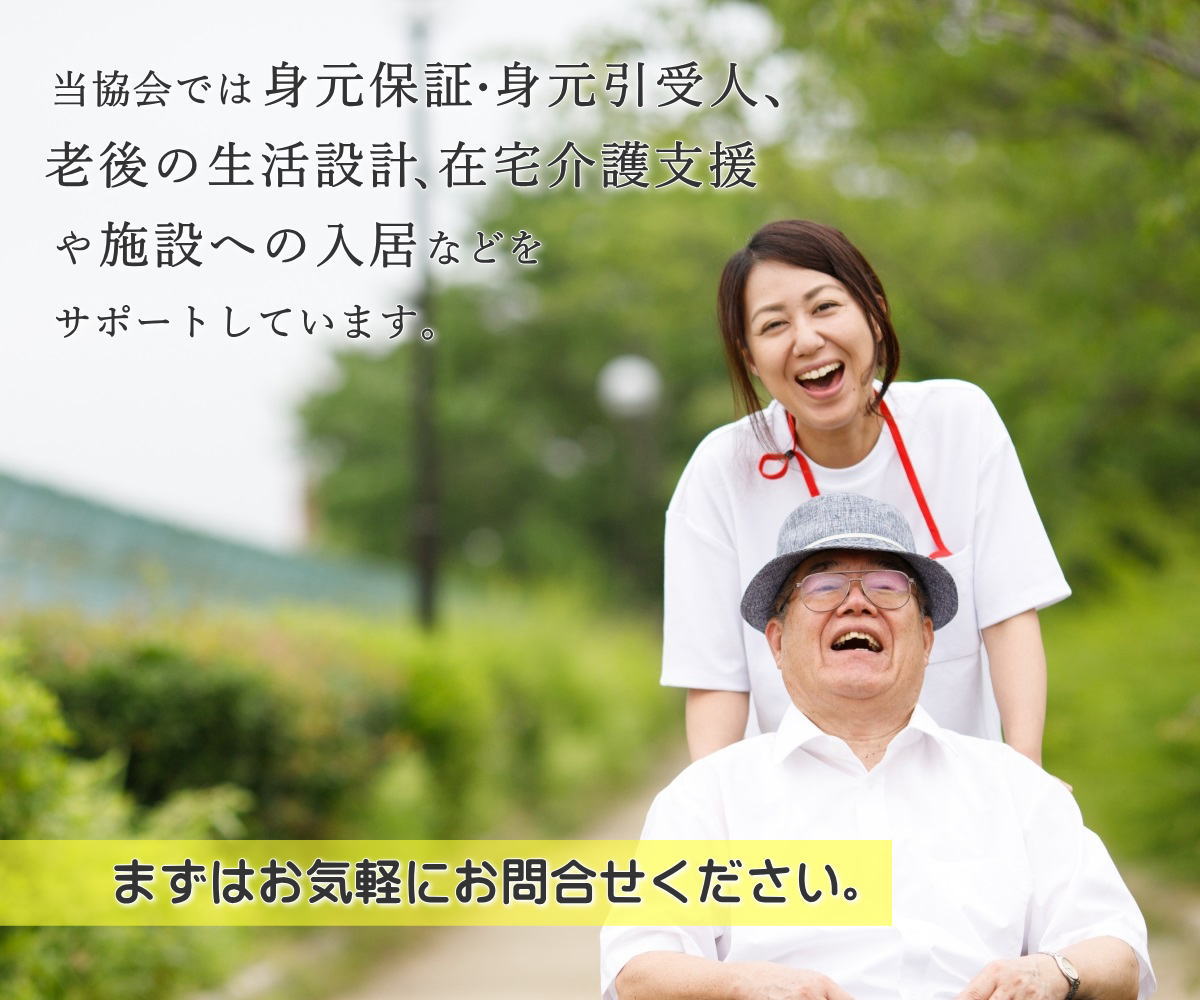 当協会では、身元保証・身元引受人、老後の生活設計、在宅介護支援や施設への入居などをサポートしています。まずはお気軽にお問い合わせ下さい。
