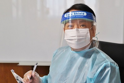 面談を行う職員はマスク、手袋、フェイスシールドを着用。相談毎に全装備を交換します。